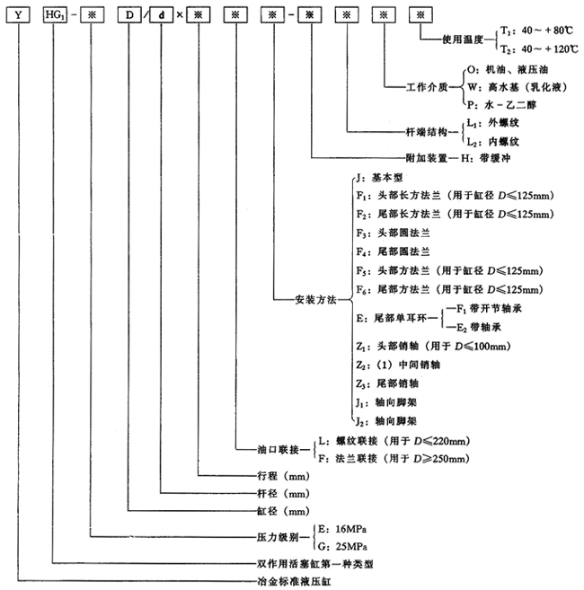 缸徑 D/mm | 速比 φ | 桿徑ΦMM /mm | YHG1E(16MPa) | YHG1G(25MPa) | ||