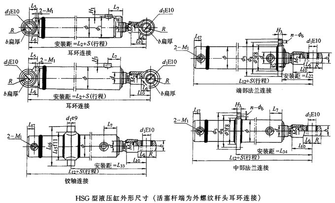 4 鉸軸荷中法蘭連接的行程不得小于表中S值。