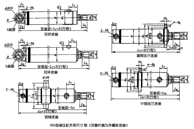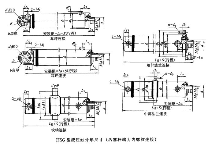 5 鉸軸荷中法蘭連接的行程不得小于表中S值。